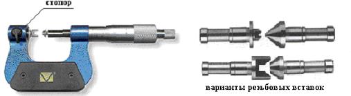 | Диапазон, мм | Цена деления, мм | Вставки резьб | Погрешн., мм | ||