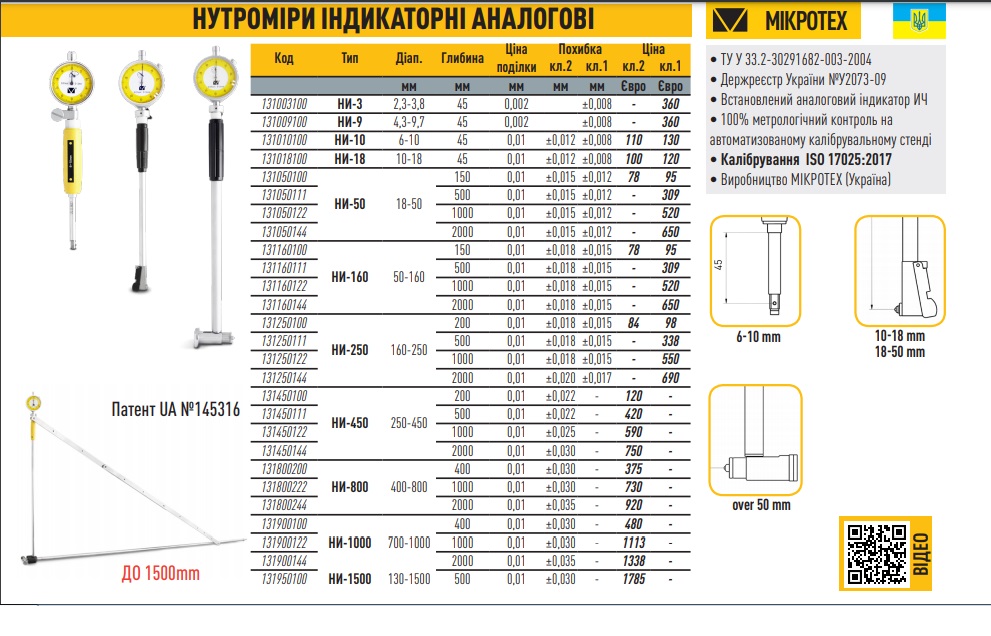 | Тип | Диап., | Ц.д., | Глубина измер., | Погрешн., | Цена UAH * |