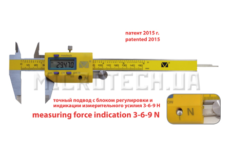 Прецизионный штангенциркуль ШЦЦПУ это собственная и запатентованная разработка Микротех. В данном штангенциркуле реализовано несколько инновационных разработок, которые делают измерения более точными и надежными. В процессе измерения штангенциркулем каждый из нас делает разное усилие прижатие губок к измеряемой детали, что соответственно дает некую погрешность при измерении детали, особенно это можно заметить на цифровых штангенциркулях, на которых можно легко передать несколько соток. Естественно со временем опытный пользователь привыкнет к одному и тому же усилию измерения. Но что делать, если одну и ту же деталь делают разные люди и с разной точностью проводят измерения одним и тем же инструментом. Эта проблема устранена в новом прецизионном штангенциркуле ШЦЦПУ с усилием прижатия. В корпусе цифрового штангенциркуля встроена динамометрическая пружина с тарированным усилием прижатия от 8Н до 12 Н. Данное новшество дает возможность с одинаковым усилием проводить измерения деталей, а усилие в 8 Н является оптимальным при проведении измерений штангенциркулем. Цена деления в штангенциркуле ШЦЦПУ всего 5 микрон при допустимой относительной погрешности 0.01 мм, высокая дискретность отсчета и минимальная погрешность гарантируют точность измерения. Так же в данном штангенциркуле реализована функция плавного подвода цифровой головки штангенциркуля.